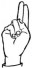 На ћирилици написано МОМИРА ЧАЈЕТИНАЦ састоји се из 15 слова [?]. Исписано ћириличном једноручном азбуком за глувонеме: